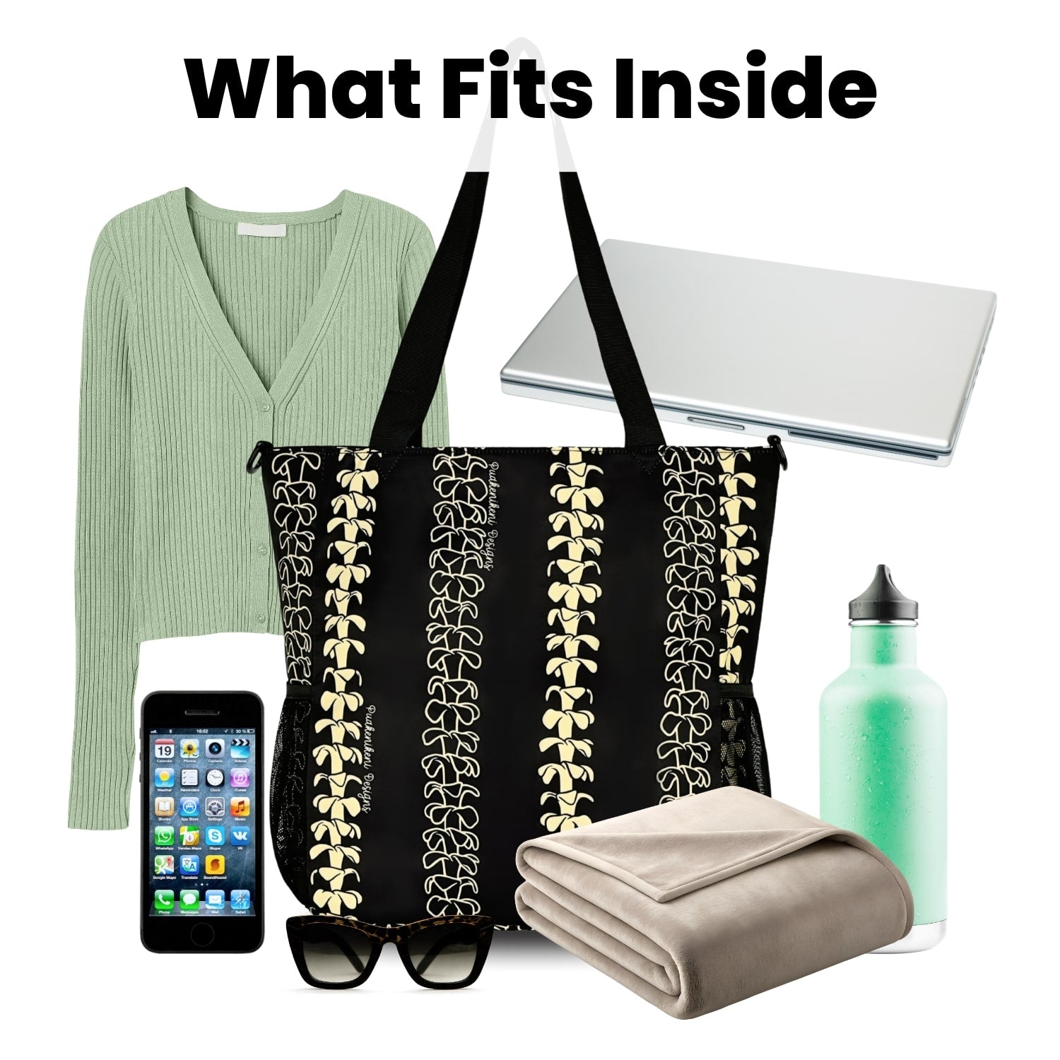 The size of the Holoholo Bag is approximately 13.1”H x 14.9”L x 5.5”D.