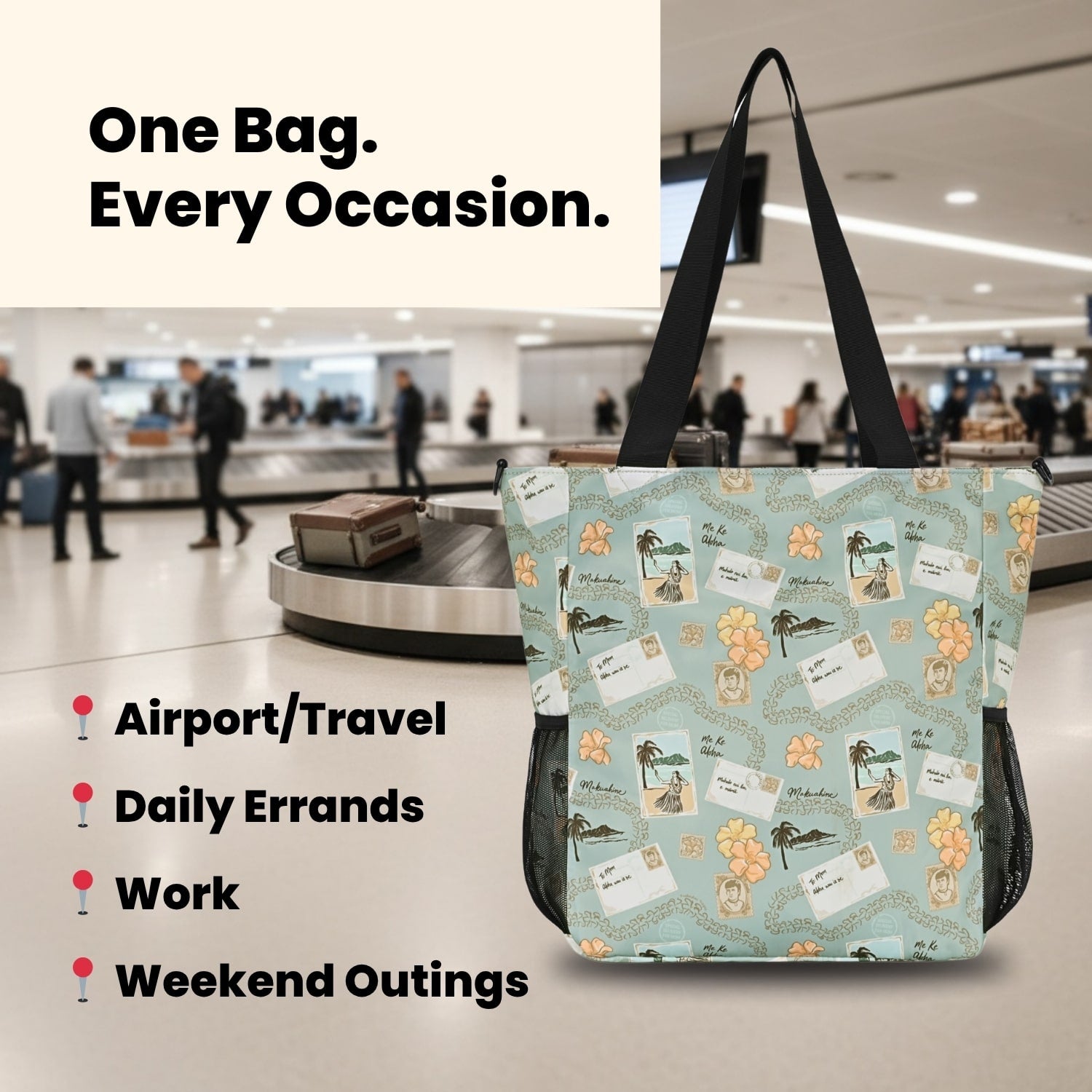 Women from Hawai'i who travel and want to stay connected to home. Whether you're heading to the mainland for work, visiting family, or taking that Vegas trip with the girls, this bag reminds you of where you're from.